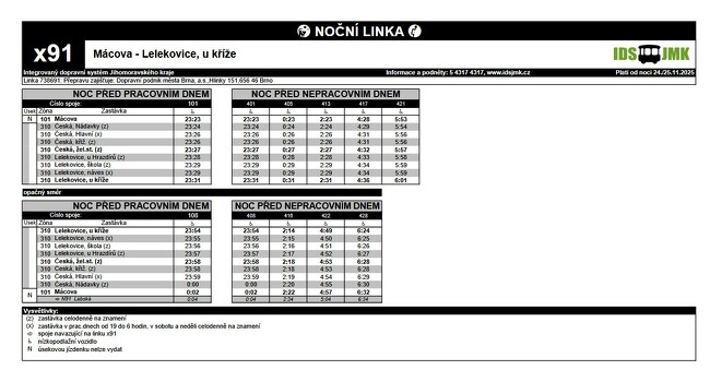 Z důvodu havarijního stavu mostu přes železniční trať v Lelekovicích bude od pondělí 24.11.2025 do odvolání omezen provoz na autobusové lince č. 41 .