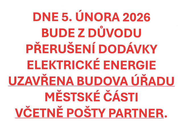 Z důvodu plánované odstávky el. energie bude ve čtvrtek 5.2.2026 uzavřena po celý den budova ÚMČ a pošty Partner.