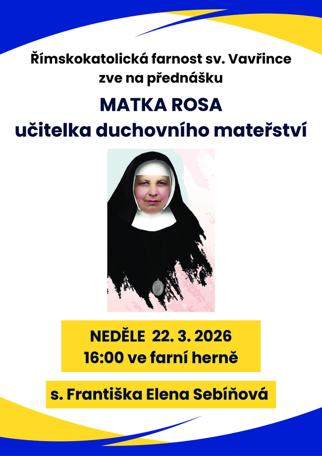 3. 4. 2026 křížová cesta ulicemi Řečkovic (Velký pátek) sraz v 19 hod. u kostela sv. Vavřince jednotlivá zastavení v ulicích Řečkovic modlitby za všechny obyvatele Řečkovic a celé farnosti