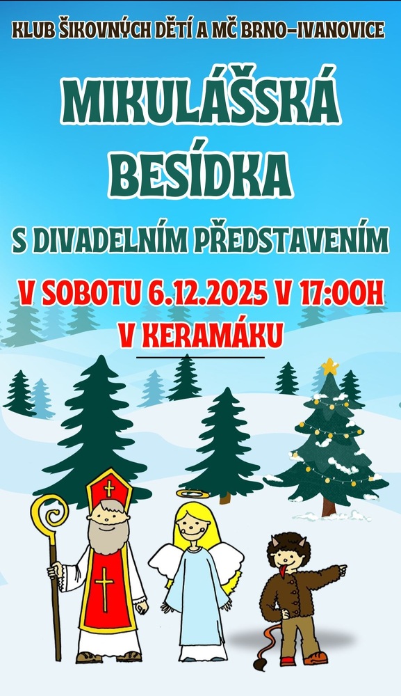 I letos se mohou děti těšit na příchod svatého Mikuláše, společně se potkáme v sobotu 6.12.2025 od 17 hod v obecním areálu Keramák.